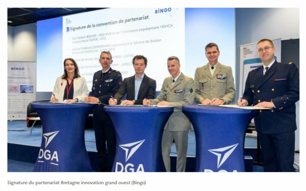 Les partenaires du dispositif Bretagne innovation grand ouest (Bingo) ont signé, le 3 mars 2026 sur le site de la DGA Maîtrise de l’information à Bruz (Ille-et-Vilaine), une nouvelle convention de partenariat pour une durée de 8 ans. Cette signature confirme l’engagement des acteurs institutionnels, académiques et économiques du territoire pour accélérer l’innovation de défense et transformer les technologies en capacités opérationnelles au profit des forces armées.