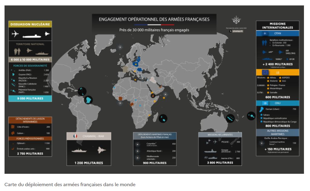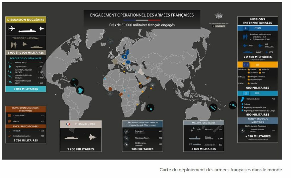 Cette répartition montre l’engagement significatif des forces armées françaises dans diverses missions à travers le monde, contribuant à la sécurité nationale et internationale.