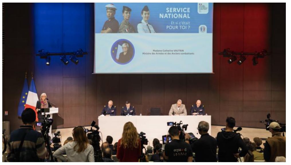 Conférence de presse d’annonce du service national, le 12 janvier 2026, au ministère des Armées. – © Sch Christian Hamilcaro / DICoD / Défense